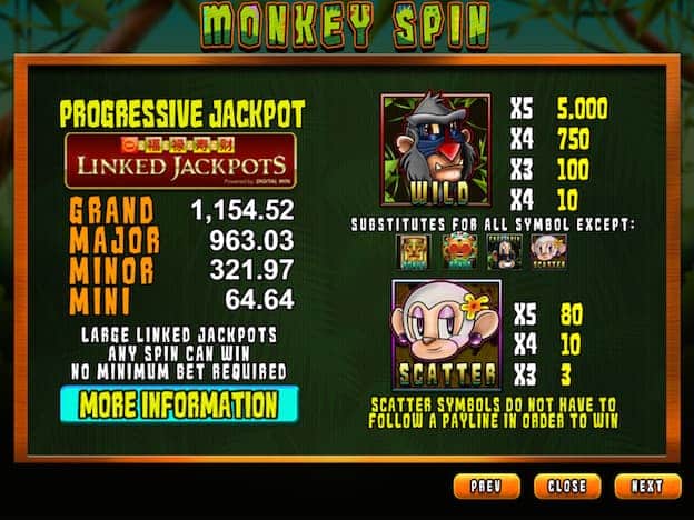 X5 WILD pays x5,000 multiplier; | Get more bonus prizes when you play Monkey Shuffle and Monkey Treasure Bonus Games.